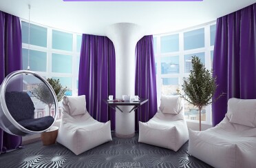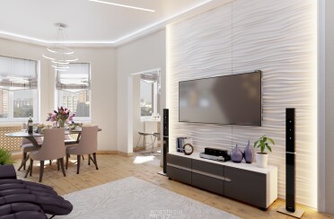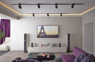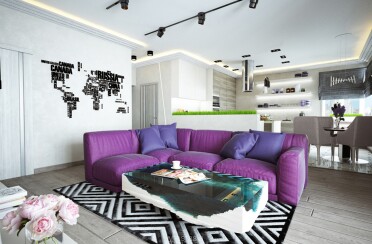 Светлая квартира / современный стиль / фиолетовые акценты / 110 кв. м / 2015 г.