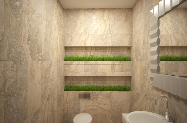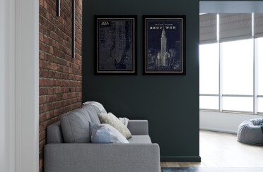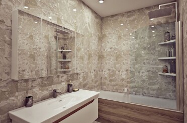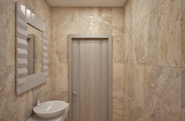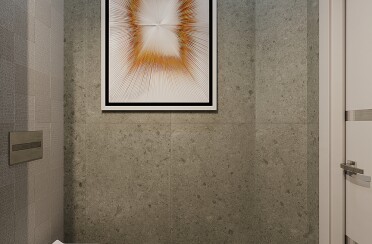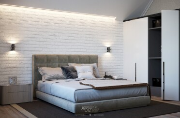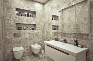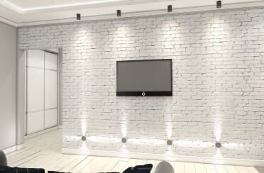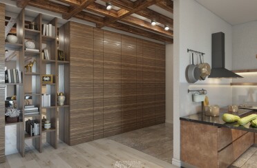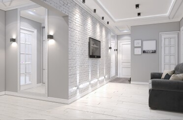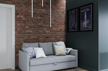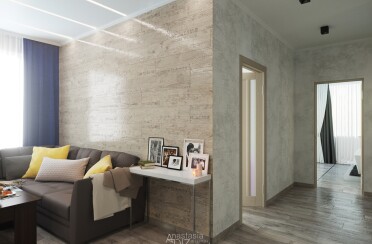 Квартира в серых тонах / стиль лофт / шпон натурального камня и состаренный кирпич для акцента/ 110 кв. м / 2016 г.
