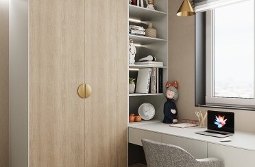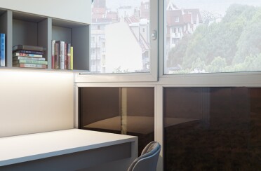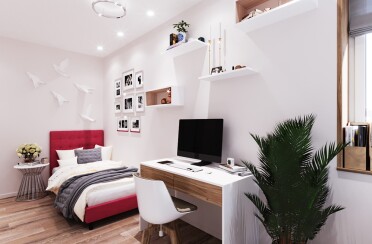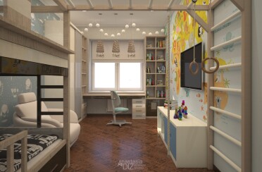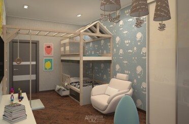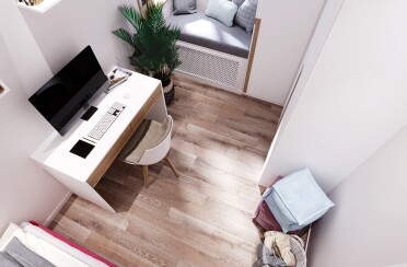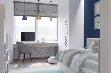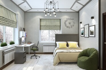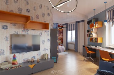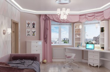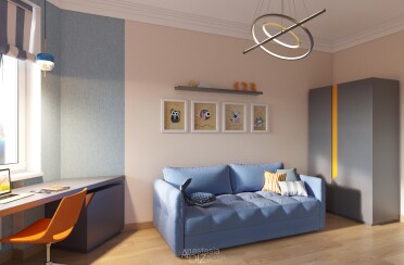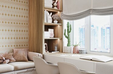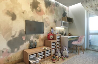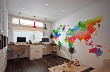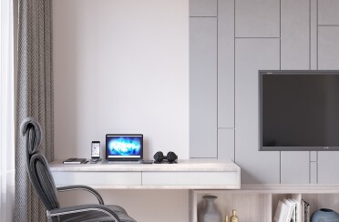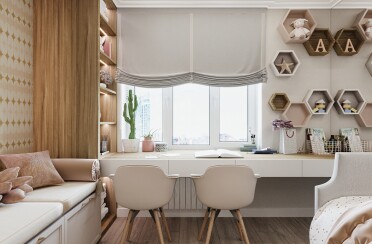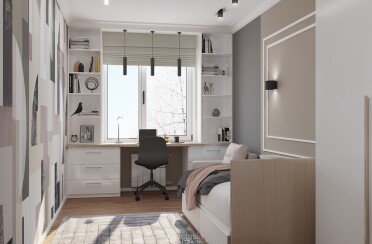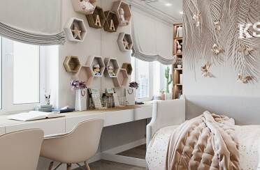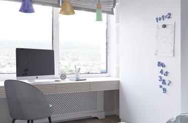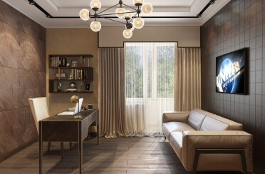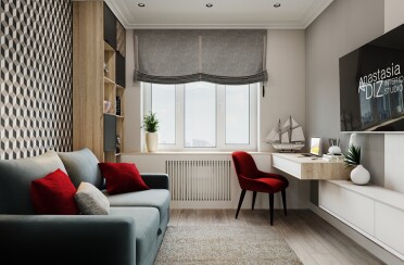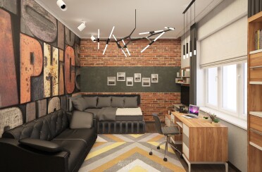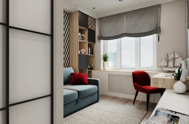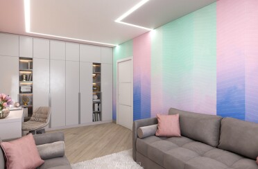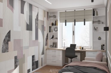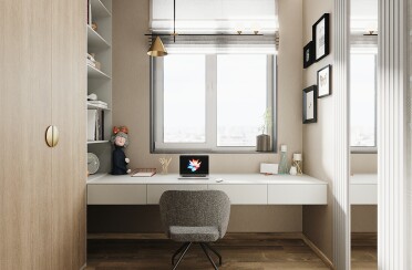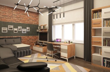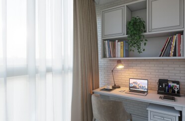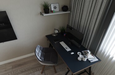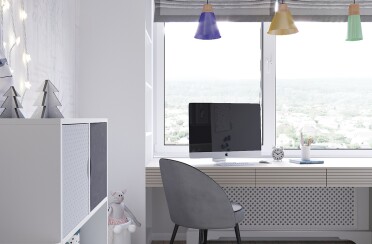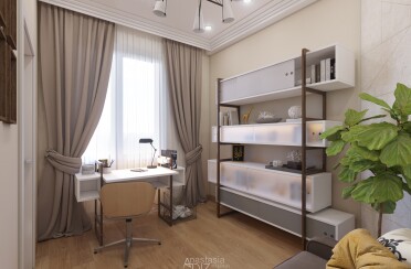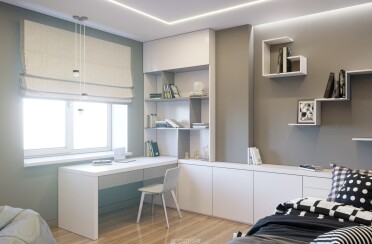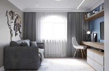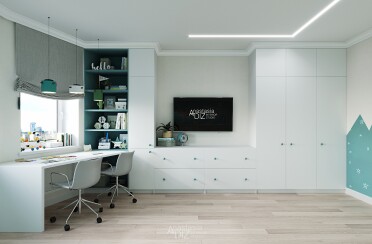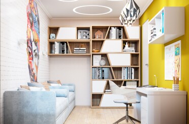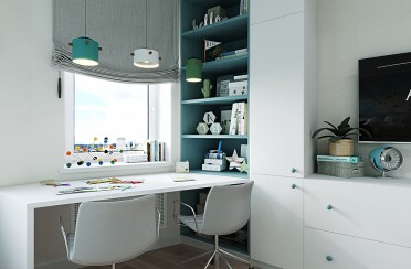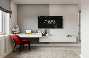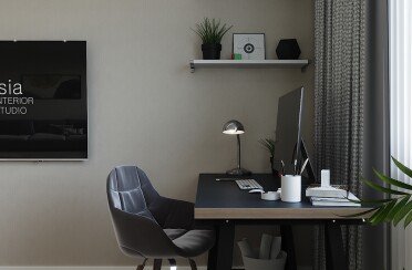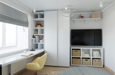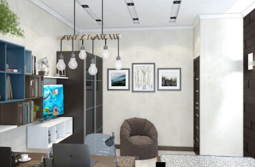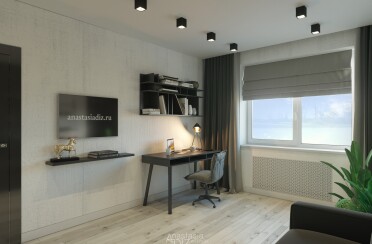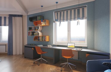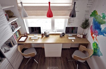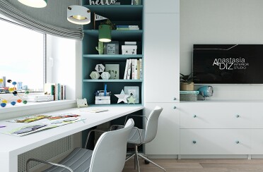 Домашний офис / современный стиль / акварельные акценты / 14 кв. м / 2016 г.
