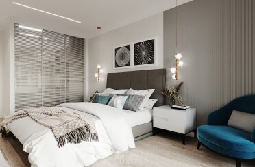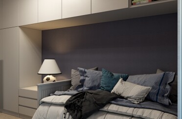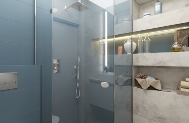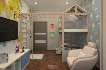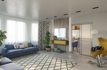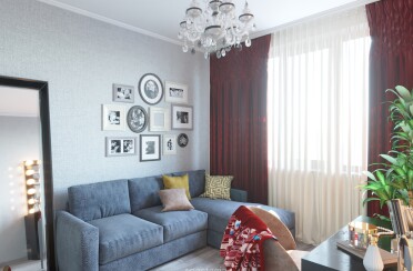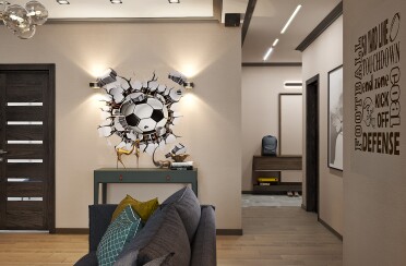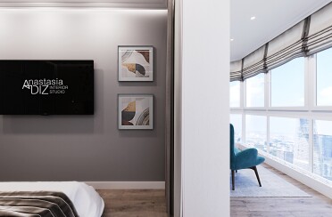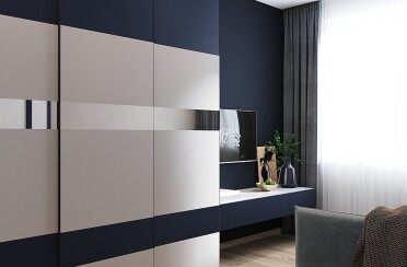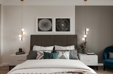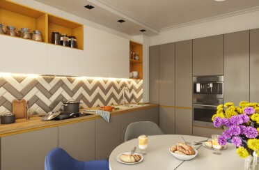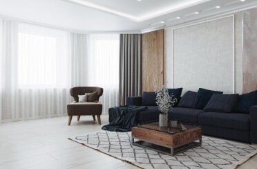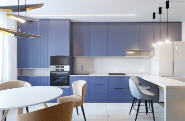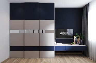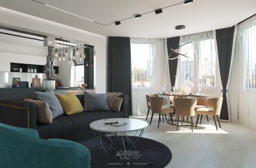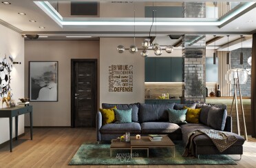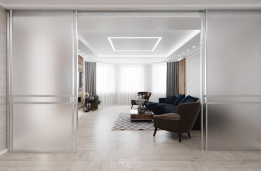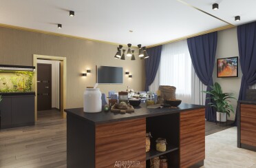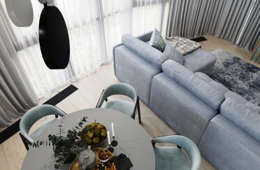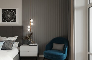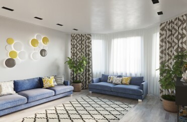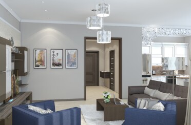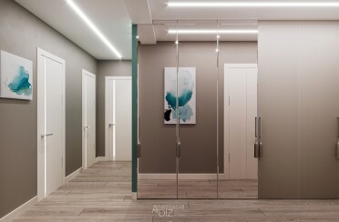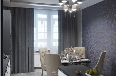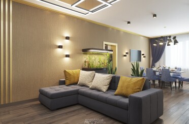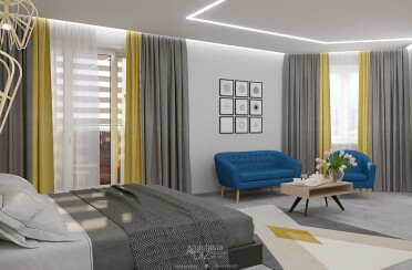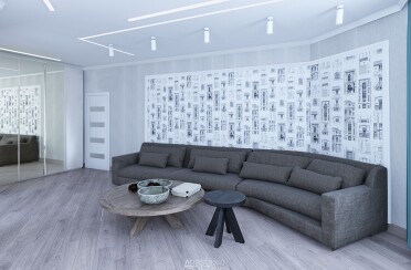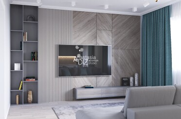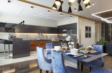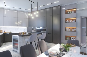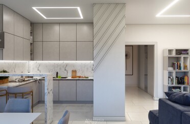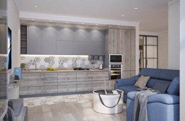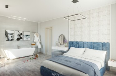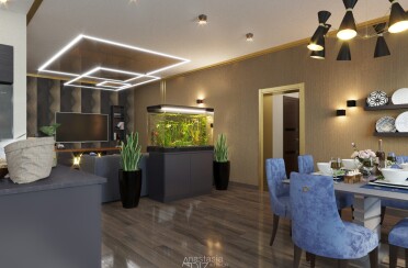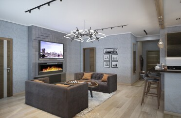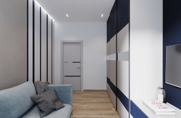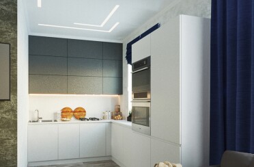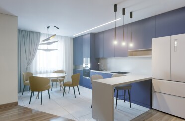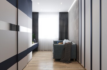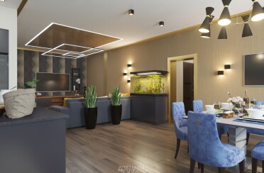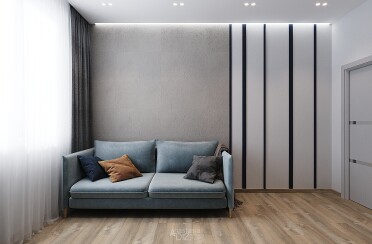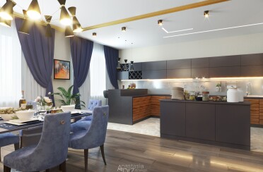 Серый интерьер /современный стиль /синие акценты /132 кв.м / 2021 г.