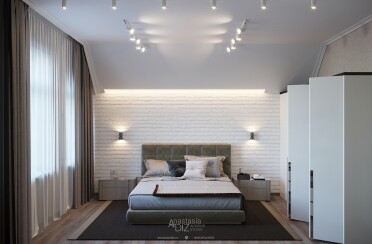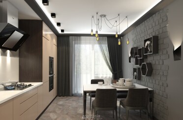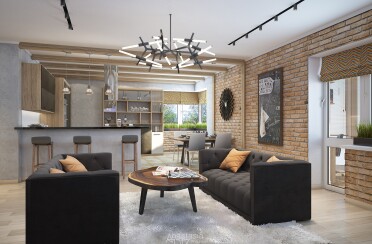 Серый интерьер / стиль лофт / акцент на фактуры / 90 кв. м / 2019 г.