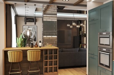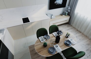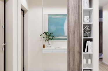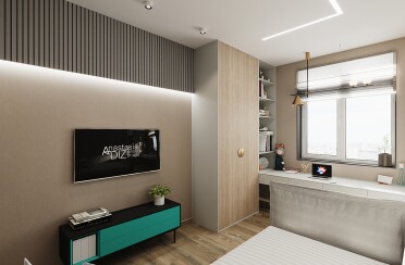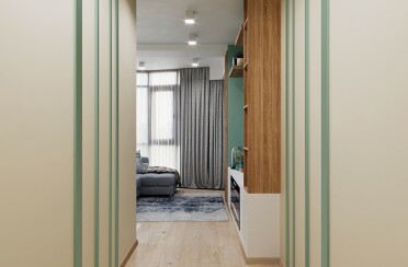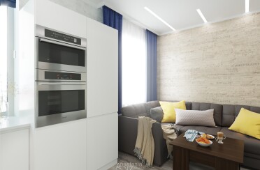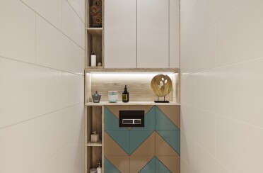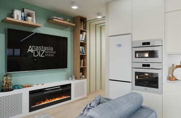 Светлый интерьер/современный стиль/бирюзовый акцент/28 кв.м / 2021 г.