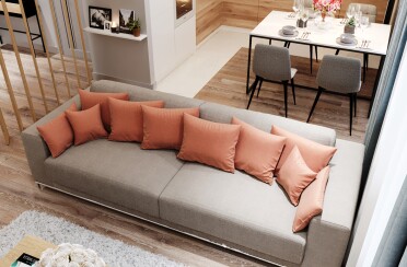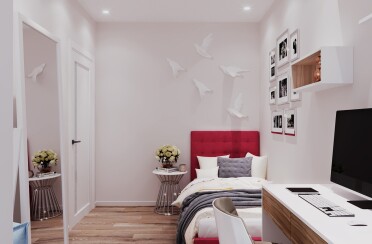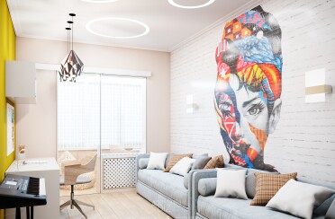 Светлый интерьер / современный стиль / яркие акценты / 85 кв. м / 2020 г.