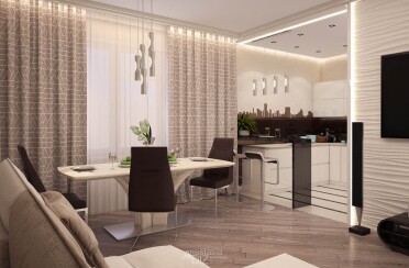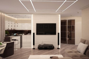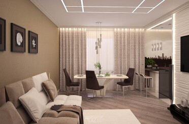 Бежево коричневый интерьер / современный стиль / 97 кв. м / 2017 г.