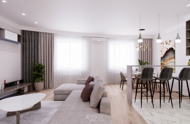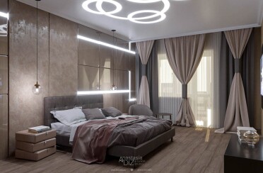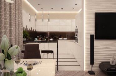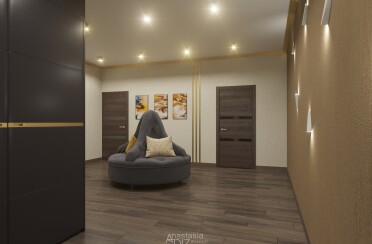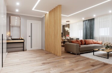 Светлый интерьер /современный стиль / акценты на коричневом / 98 кв. м / 2020 г.
