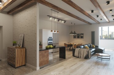Интерьер в серых тонах / стиль лофт / 58 кв. м / 2018 г.