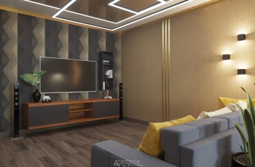 Темный интерьер / современный стиль / акцент черное с золотом / 250 кв. м / 2018 г.