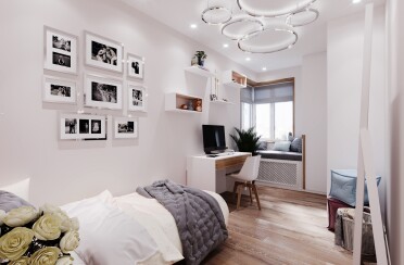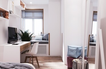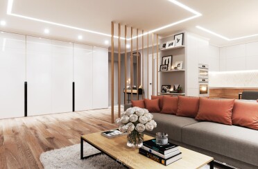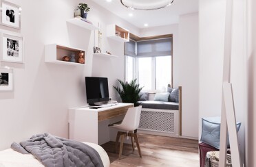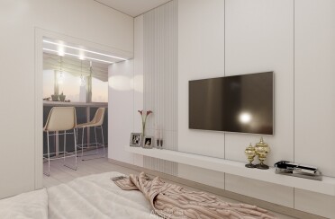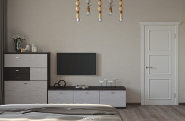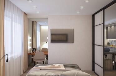 Светлая гостиная и спальня / современный стиль / 30 кв. м / 2019 г.