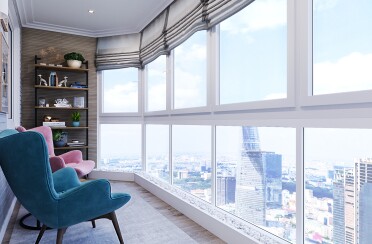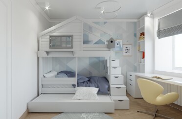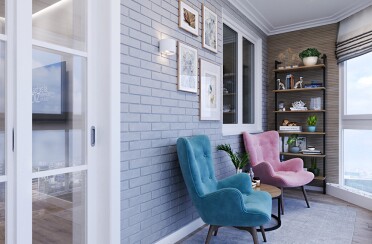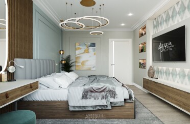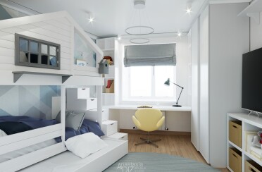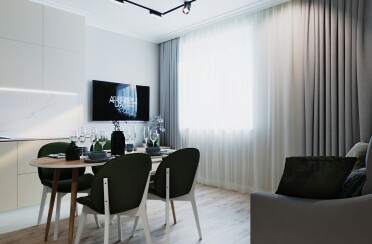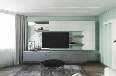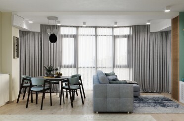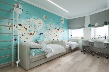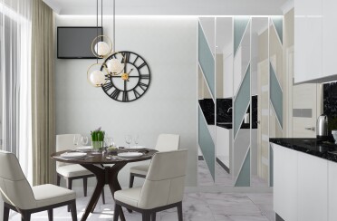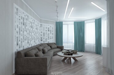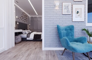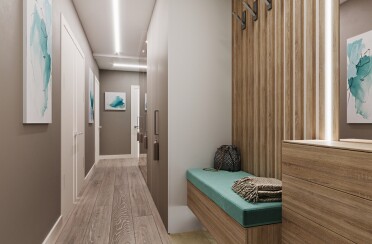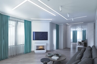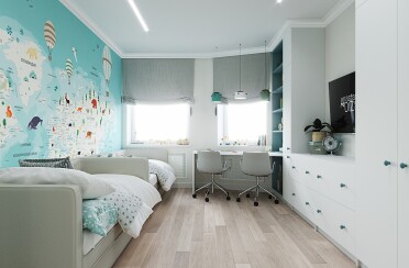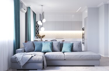 Светлый интерьер / современный стиль / аквамарин / 92 кв. м / 2018 г.