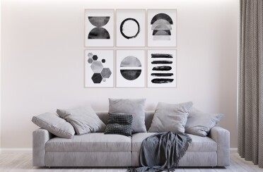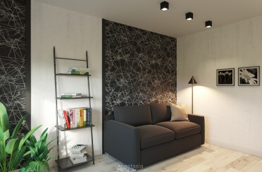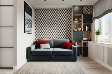 Интерьер в серых тонах / стиль лофт / черный детали для акцента / 64 кв. м / 2019 г.