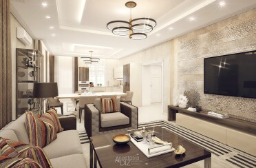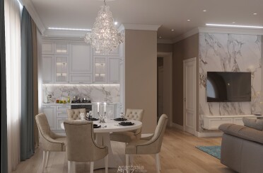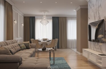Бежевый интерьер / современная классика / 94 кв. м / 2019 г.