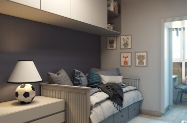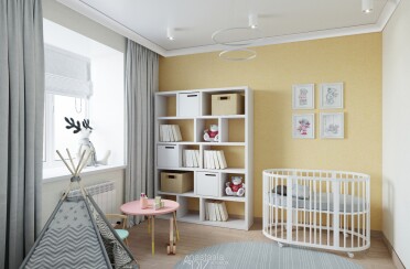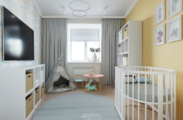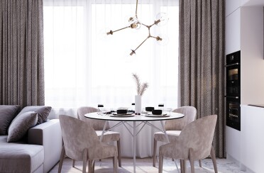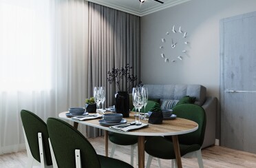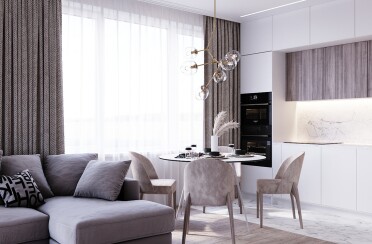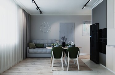 Светлый интерьер / скандинавский стиль / серые оттенки для акцента / 96 кв. м / 2020 г.