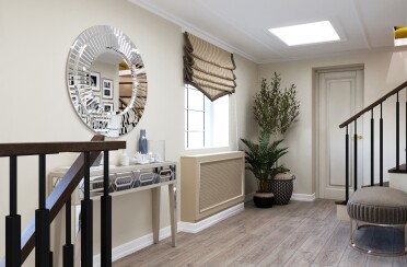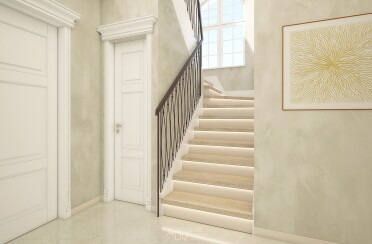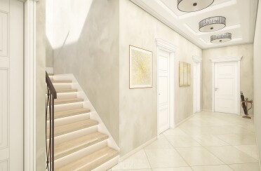 Дизайн загородного дома в светлых тонах / современная классика / 302 кв. м / 2017 г.
