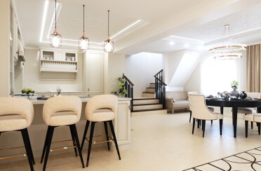 Светлый интерьер загородного дома / современная классика / 161 кв. м / 2018 г.