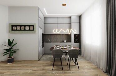 Интерьер в серых тонах /современный стиль /дерево цвета орех /102 кв.м / 2020 г.