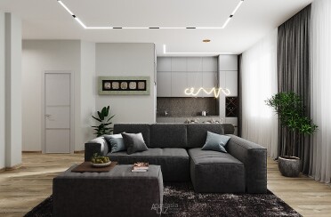 Серый интерьер/современный стиль/100 кв.м / 2021 г.