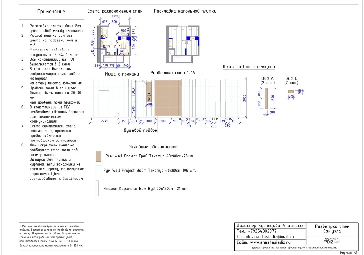 - Дизайнер по месту с учетом выравнивания стен по факту, вносит корректировки. Также можно внести корректировки в раскладку плитки с учетом изменившейся подрезки.