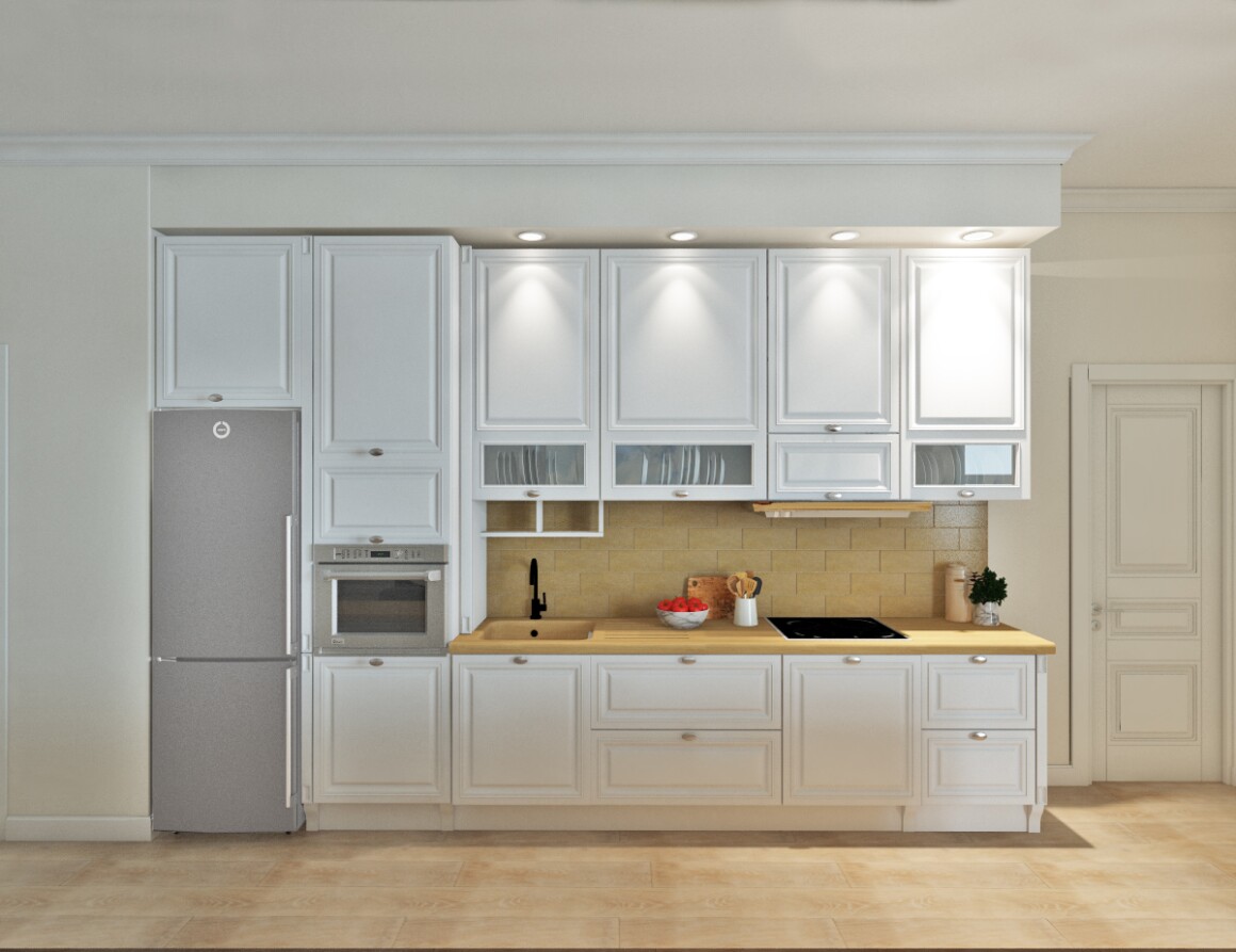 Раскладка плитки в зоне кухни и прихожей согласно визуализации или согласно тех. заданию и пожеланию заказчиков, если это технический проект без визуализации.