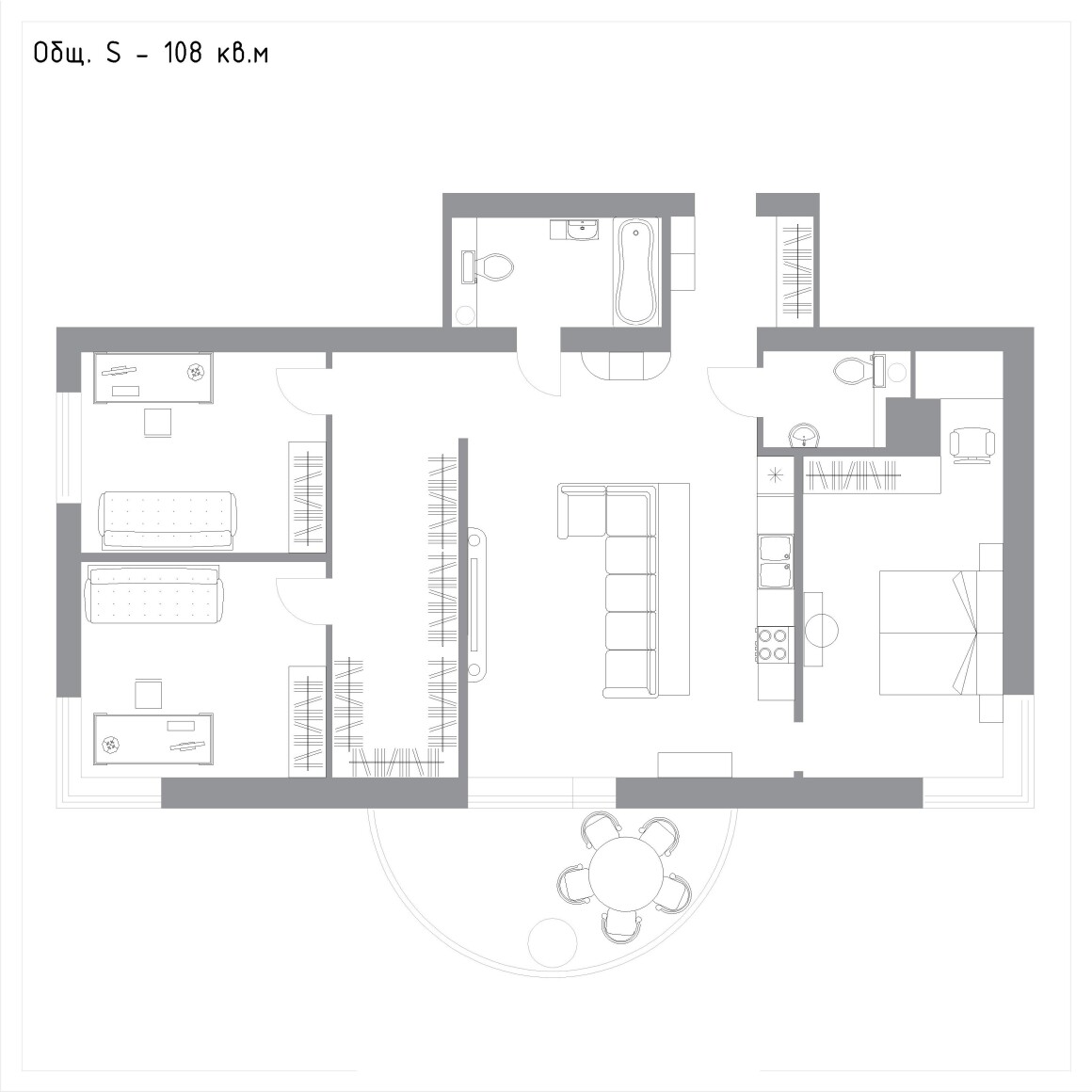 Дополнительные варианты расстановки мебели оплачиваются отдельно.